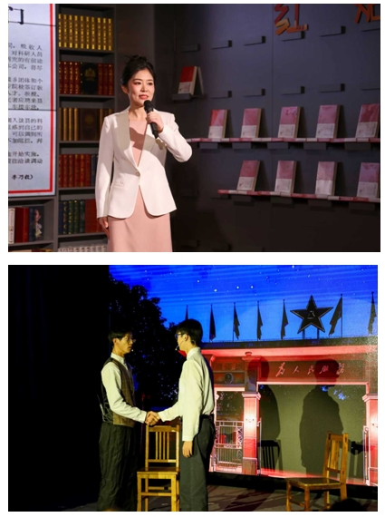 旅游管理系黨支部副書記王娟以《思想浸潤(rùn)心靈 傳文脈繼往開來——習(xí)近平文化思想在浙江的溯源與實(shí)踐》為題,分享了《習(xí)近平在浙江》的讀書心得,情景劇《遺址邊的吶喊》,將思想性、藝術(shù)性及感染力高度結(jié)合,讓觀眾在情感共鳴中感受習(xí)近平文化思想的偉力。
