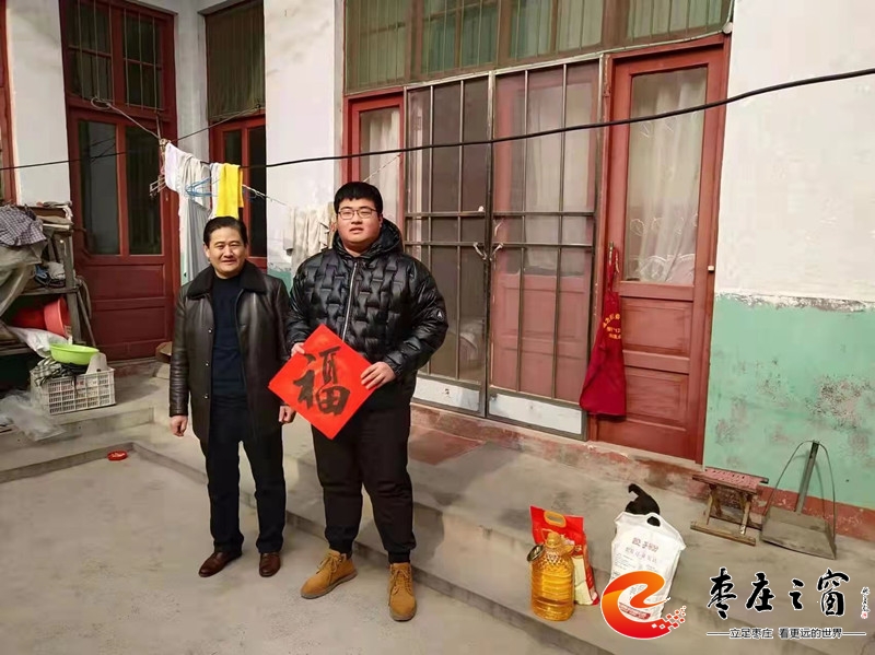 2022年1月28日,薛城區(qū)政協(xié)副主席、工商聯(lián)主席姚磊帶領(lǐng)工商聯(lián)領(lǐng)導(dǎo)班子成員分別到周營、鄒塢、常莊等鎮(zhèn)村開展春節(jié)前“送溫暖”走訪慰問7家?guī)头鰬艋顒,為他們送去愛心企業(yè)家王興亮選購的米、油、面。姚磊還專門送了自己書寫的《福》字春聯(lián),并向幫扶戶送上節(jié)日問候和新春祝福。