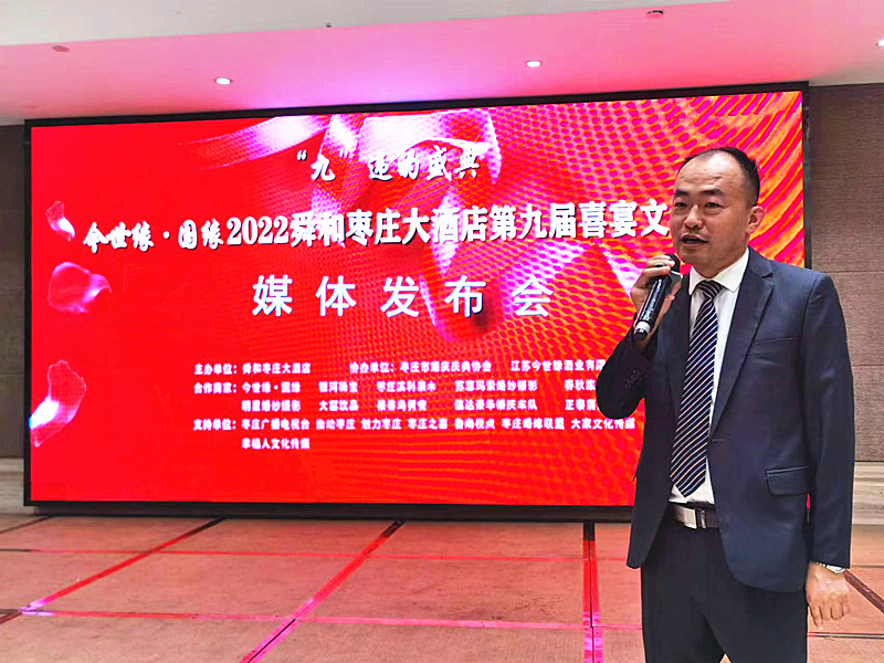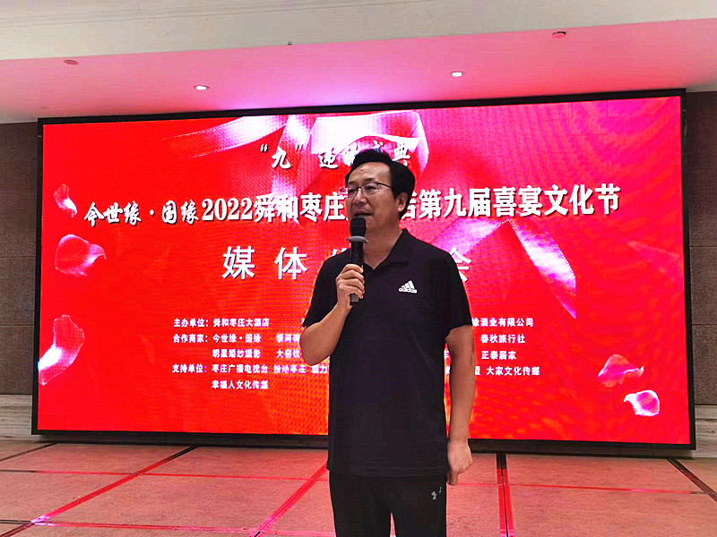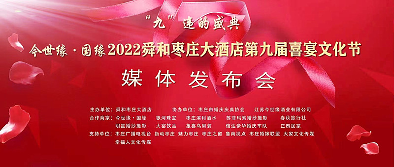9月12日下午,由舜和棗莊大酒店主辦,棗莊市婚慶慶典協(xié)會(huì)、江蘇今世緣酒業(yè)有限公司協(xié)辦的”“九”違的盛典——今世緣·國緣 2022舜和棗莊大酒店第九屆喜宴文化節(jié)媒體發(fā)布會(huì)在舜和棗莊大酒店隆重舉行。