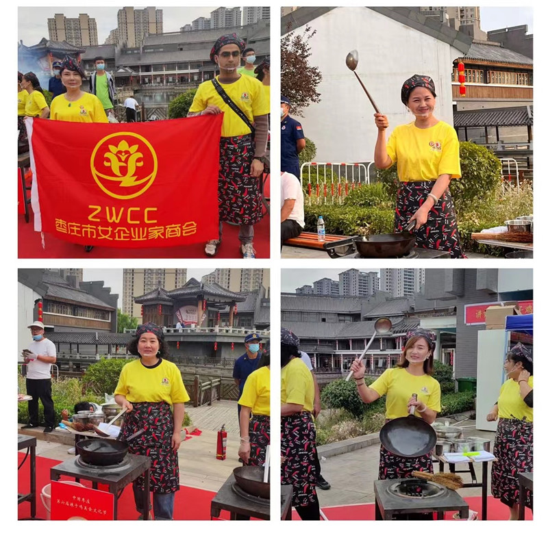 此次盛會(huì),棗莊市女企業(yè)家商會(huì)受邀并組織20余名會(huì)員參加。在商會(huì)會(huì)長(zhǎng)盧春穎的帶領(lǐng)下,商會(huì)會(huì)員企業(yè)山東化繁生物科技有限公司、山東鼎養(yǎng)食品有限公司、棗莊暹羅印象泰國(guó)直營(yíng)店三家企業(yè)現(xiàn)場(chǎng)布置展位參展,充分展示了會(huì)員企業(yè)優(yōu)秀的企業(yè)文化和豐富的特色產(chǎn)品。同時(shí)以盧會(huì)長(zhǎng)為代表的還參加了百姓炒雞表演,展現(xiàn)了精湛的廚藝,商會(huì)副會(huì)長(zhǎng)張?jiān)聠蹋ㄉ介茫┦艽髸?huì)邀請(qǐng)參加開幕式并激情演唱自己的原唱歌曲。